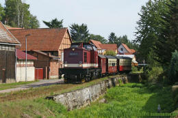 ... 99 7233 fährt mit dem anderen Teil des Güterzuges nach Hasselfelde. |
